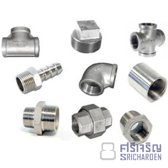 - อุปกรณ์ฟิตติ้ง ชนิดเกลี่ยว (Screwed fitting) และชนิดเชื่อม (Butt welded fitting) สแตนเลส สำหรับอุตสาหกรรมอาหาร ยา เครื่องดื่ม เครื่องปรุงรส เคมีภัณฑ์ ข้อต่อข้องอข้อลด ข้องอ ผ.ม. สามทางเกลียว ฝาครอบ นิปเปิ้ล ปลั๊กอุดยูเนี่ยน หางปลาไหล ยูโบลท์ สตัดเกลียว น็อต แหวน สแตนเลส